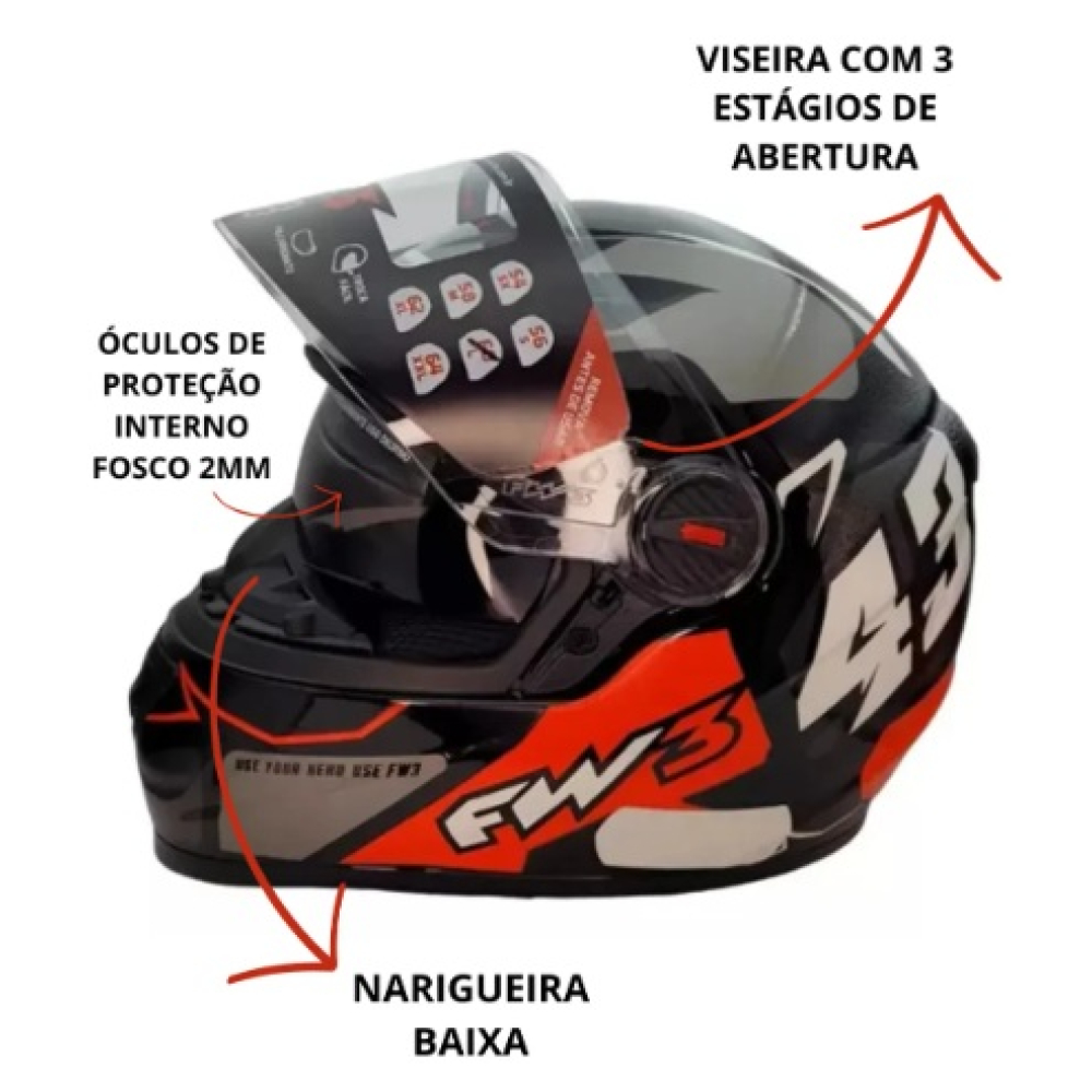 Capacete Fechado FW3 COM OCULOS INTERNO