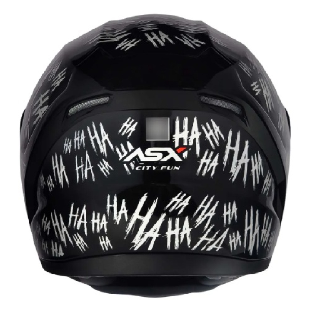 ESPECIFICAÇÕES DO PRODUTO • Marca: ASX • Casco: City • Modelo: Fun • Acabamento: Brilho • Cor: Preto e Branco • Peso médio: 1500g • Viseira: Transparente • Viseira: Fumê • Adesivos refletivos já incluídos e instalados