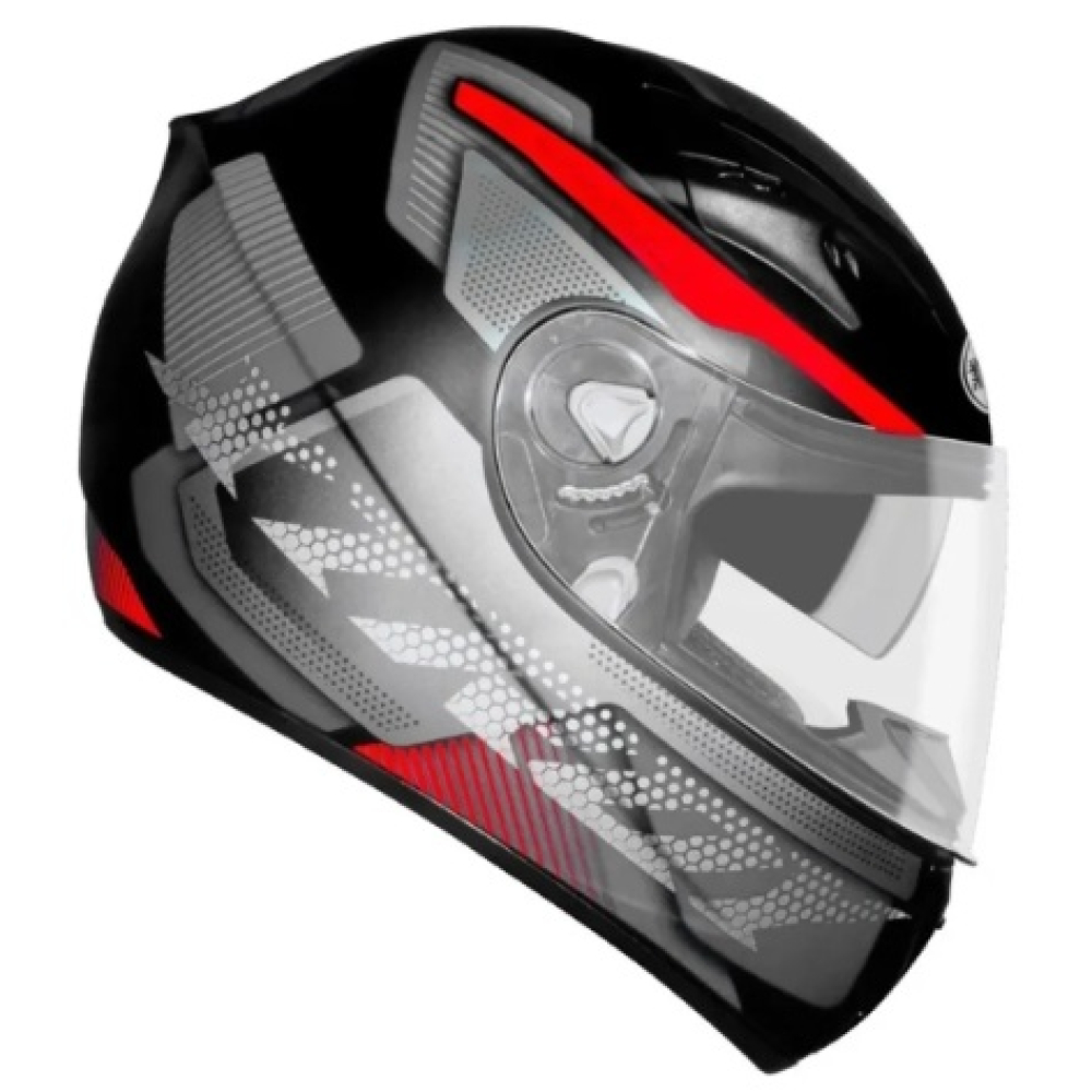 Este capacete integral garante a máxima segurança, pois cobre desde o queixo até a nuca, para que a cabeça fique totalmente protegida.